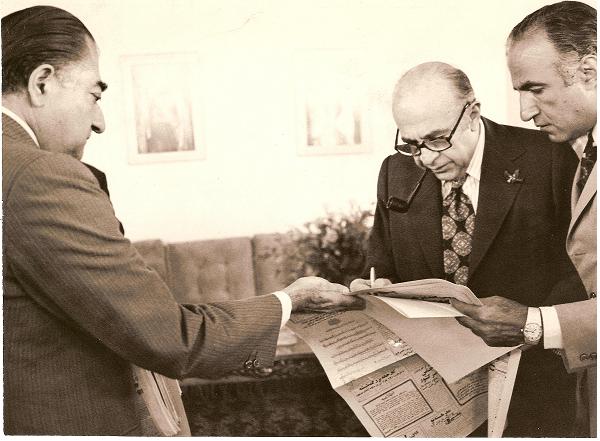 Ali was the General Director of His Majesty’s Imperial Court, when Hoveyda was the Minister of the Imperial Court. In his previous position he was the special Aid Du camp and Director of Protocol for the Prime Minister, Hoveyda. He started his career in the Foreign Ministry following in the footsteps of many in his family including his uncles Abdullah and Nasrullah Entezam. He received his PhD in political science from the University of Geneva in 1947 and upon returning to Iran worked in the Foreign Ministry. He then joined the NIOC (National Iranian Oil Company) when Abdullah was the Chairman of the Board to run his office. There he met, again, his friend Amir Abbas Hoveyda. Ali and Hoveyda had met in Geneva and Belgium when Hoveyda was in Abdullah’s circle. When Abdullah brought both Hoveyda and Hassan Ali Mansur into his own circle. Ali also worked in the literacy campaign with Her Highness Princess Ashraf, and the Iranian Conference board.