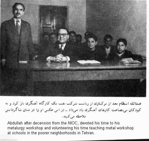 Abdullah Entezam (Entezam Saltaneh), was one of the most prolific politicians/diplomats of Iran’s 20th Century. A diplomat of sterling reputation. He was a close confidant of the His Majesty Mohamad Reza Shah Pahlavi. His career spanned 5 decades in many Ambassadorial and cabinet positions, such as the Charge D’affaries in Berlin while Nazi’s were in power, later ambassador after WWII. Economic Attache with Ambassador Sardari (Persian Schindler} who moved the Iranian Embassy from Paris to Vichy. Member of delegation to create the League of Nations. Secretary of the Iranian legation to the US in the early 1920’s when Woodrow Wilson was in the white house. He became the most popular and effective Chairman of the National Iranian Oil Company in the late 50’s and early 60’s. Only to be sidelined by the Shah for his frank and direct remarks to the sovereign. He was known to speak his mind freely with the monarch. It is said, after Zoka Ol Molk Forough, Abdullah was the only elder statesman who played the role of mentor to the Shah. A role Abdullah took seriously and stayed loyal to the soveriegn even after his dismissal from government jobs. During the heyday of the 1979 revolution he was asked by the Monarch to take the helm of he country by becoming the Prime Minister, which he refused. But once more took over the helm of the National Iranian Oil Company and was successful in quieting the riots, restoring order. Abdullah was among a group of politician who in 1963 urged the Shah not to kill Khomeini but to exile him. That, in retrospect probably was his worst frank request of the monarch.