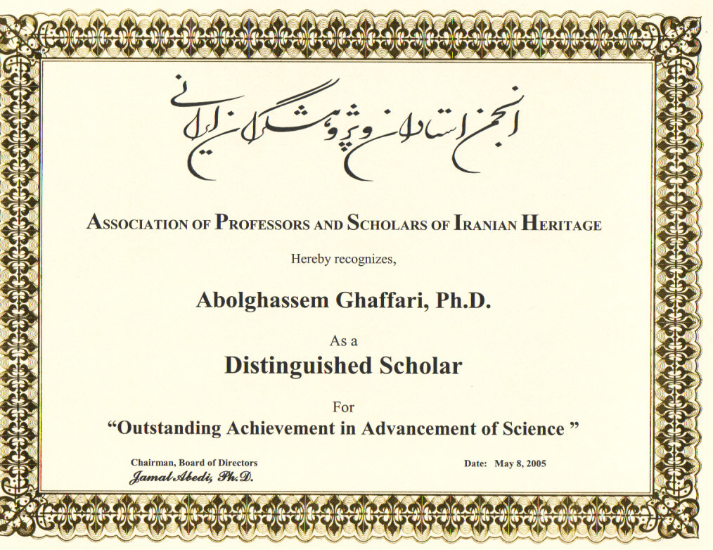 Dr. Ghaffari was a chief scientist on the Mercury Gemini and Apollo programs. His mathematical calculations were responsible for taking man to the moon and back. He worked for NASA for those crucial years of the space race and received a medal of honor from President Nixon and the Order of Taj from the Shah of Iran. He worked and collaborated with Albert Einstein, J. Robert Oppenheimer and Wernher Von Braun.